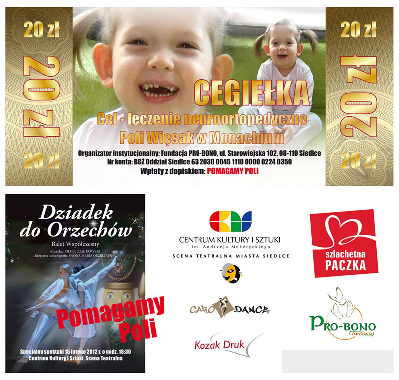 Centrum Kultury i Sztuki zaprasza 15 lutego o godz. 18.30 na charytatywny spektakl „DZIADEK DO ORZECHÓW” dla 3 letniej Poli Więsak. Cały dochód ze sprzedaży cegiełek zostanie przekazany na leczenie i rehabilitację małej siedlczanki.