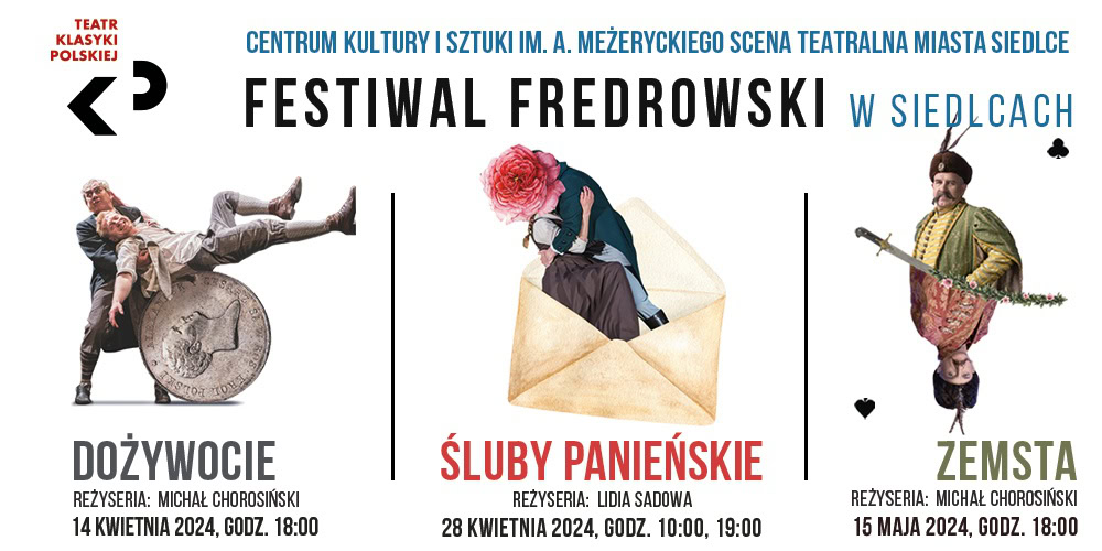 Centrum Kultury i Sztuki zaprasza 15 maja (środa) o godz. 18. na trzeci ze spektakli w ramach Festiwalu Fredrowskiego. Będzie można obejrzeć „Zemstę” w wykonaniu Teatru Klasyki Polskiej.