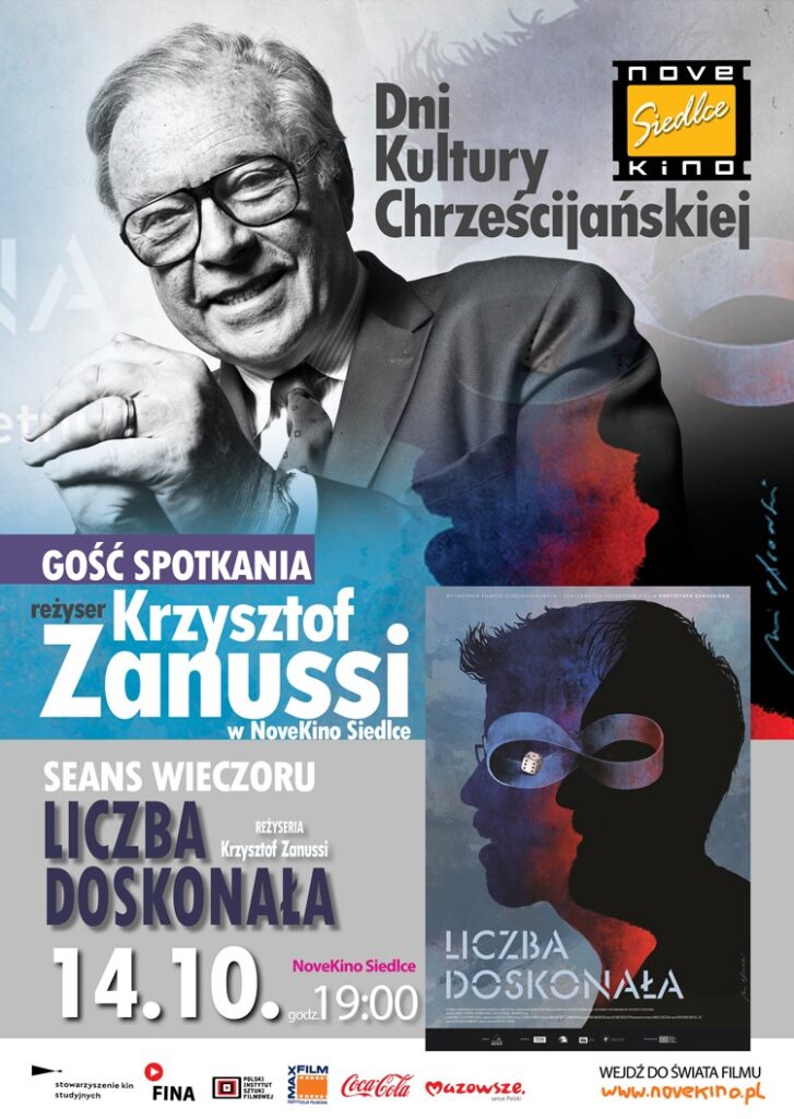 W ramach trwających w Siedlcach Dni Kultury Chrześcijańskiej 14 października o godz. 19.00 NoveKino Siedlce zaprasza na spotkanie z reżyserem Krzysztofem Zanussim. Spotkanie poprowadzi Agnieszka Pasztor.