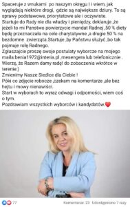 Druga radna „Zgody i Rozwoju” Bożena Uziębło, w trakcie kampanii samorządowej na swoim profilu w portalu społecznościowym, prosząc o głosy napisała: