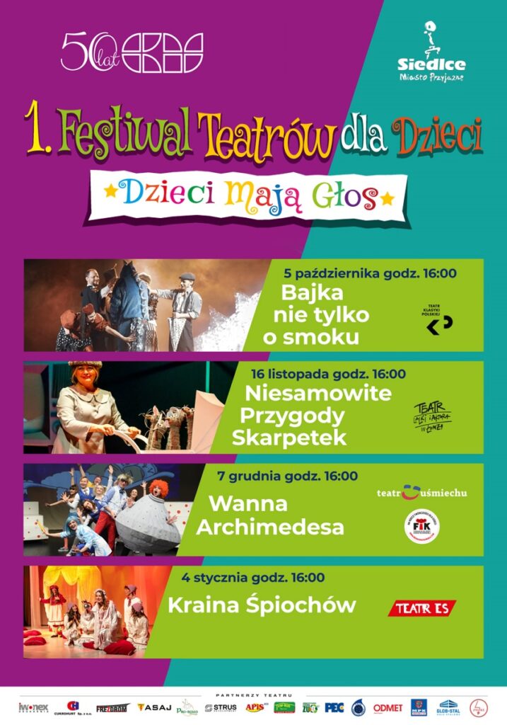 W programie festiwalu znalazły się trzy znakomite przedstawienia: „Bajka nie tylko o smoku” – w wykonaniu Teatru Klasyki Polskiej, „Niesamowite przygody skarpetek” – Teatru Lalki i Aktora w Łomży, „Wanna Archimedesa” – spektakl przygotowany przez Impresariat Teatralny M-BART we współpracy z Fundacją im. Ireny Kwiatkowskiej.