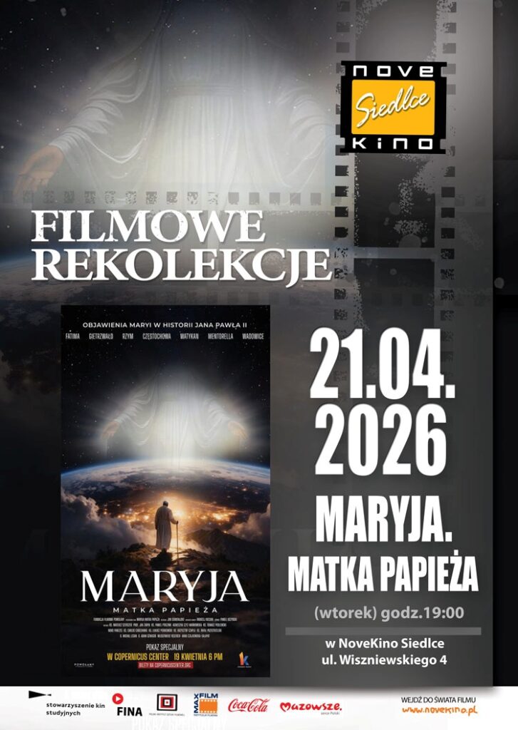 NoveKino Siedlce zaprasza na kolejną odsłonę cyklu Filmowe Rekolekcje. We wtorek, 21 kwietnia o godz. 19. będzie można obejrzeć dramat religijny „Maryja. Matka Papieża”.