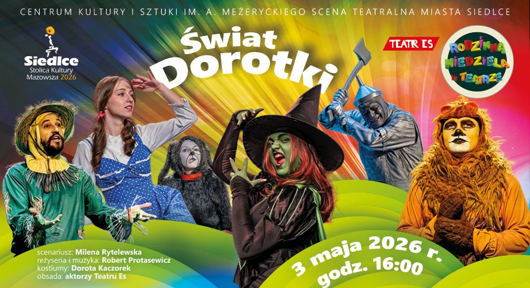 Spektakl dla dzieci Teatru ES pt. „Świat Dorotki” na podstawie powieści L. Franka Bauma „Czarnoksiężnik z Krainy Oz”, która od ponad 100 lat rozpala wyobraźnię dzieci na całym świecie. Trąba powietrzna porywa dom Dorotki wraz z nią, przenosi go do krainy Oz i zrzuca wprost na Złą Czarownicę. Dziewczynka w nagrodę dostaje jej niezwykłe Trzewiczki, a Dobra Czarownica każe jej iść aż do Szmaragdowego Grodu, gdzie mieszka potężny Czarnoksiężnik. Podobno tylko on może spełnić jej życzenie: powrót do domu. Po drodze Dorotka spotyka Stracha na Wróble (który chciałby mieć rozum), Blaszanego Drwala (który pragnie serca) i Tchórzliwego Lwa (który marzy o odwadze).